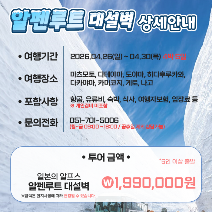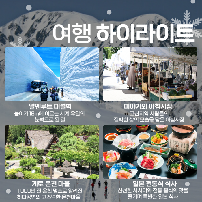 봄 알펜루트 대설벽 (4월 26일~30일 / 4박 5일) 요약정보 및 구매