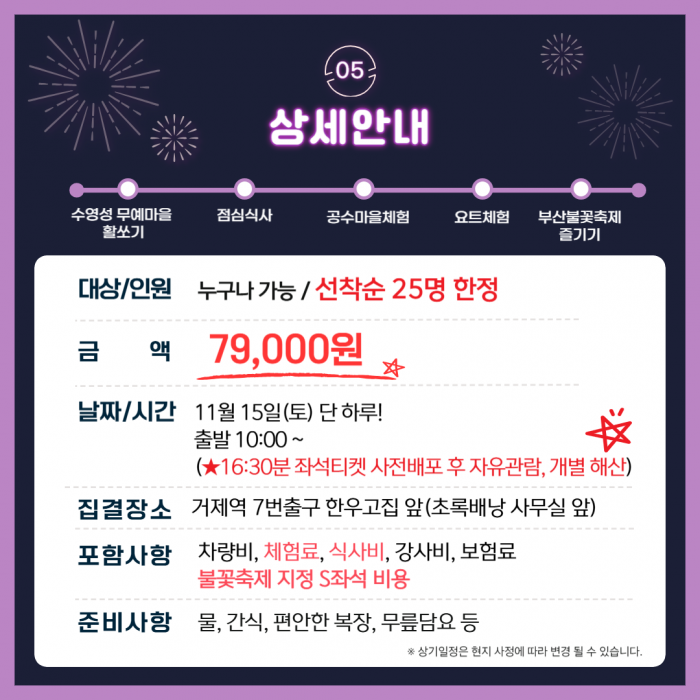 [11월 15일(토) 단 하루!] 부산불꽃축제&DAY투어 요약정보 및 구매