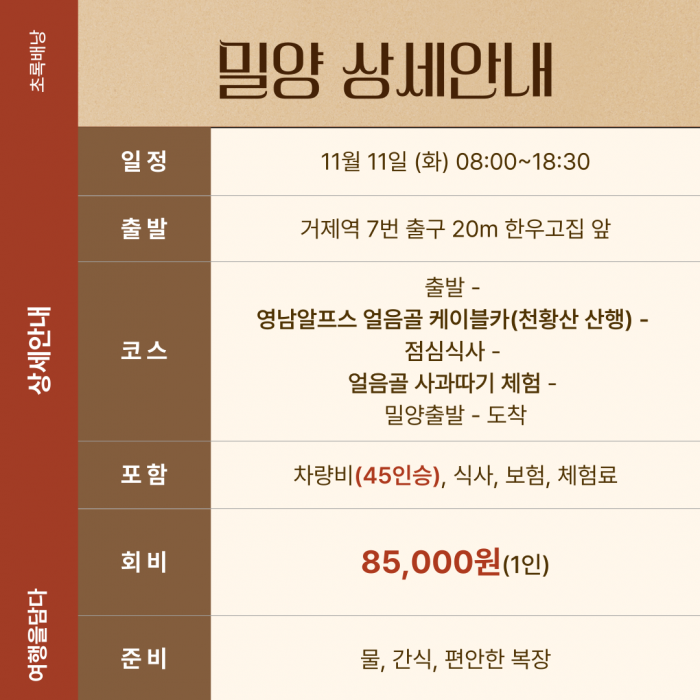 [11월&여기] 치유힐링 밀양 / 11월 11일 (화) 요약정보 및 구매