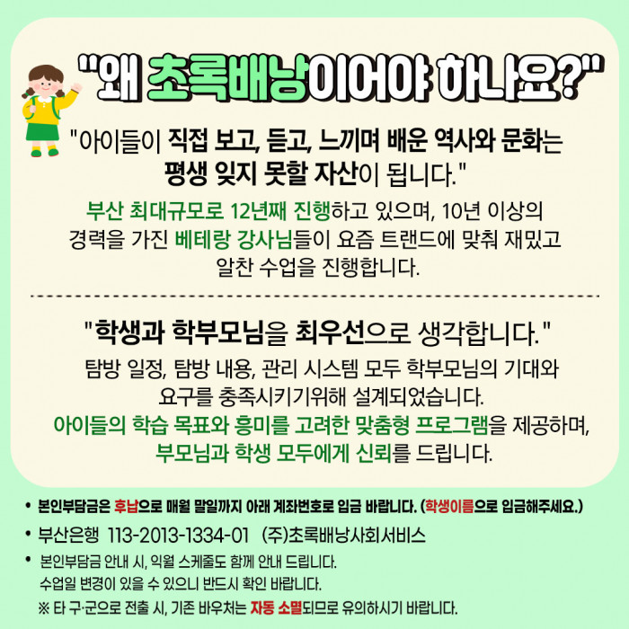 초록배낭은 일반여행업에 등록하였으며, 영업보증보험에 가입 등 여행업법제반조건을 준수하고 있습니다.