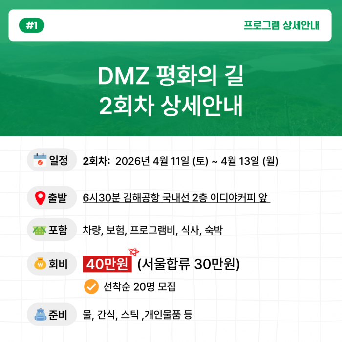 DMZ 평화의 길 트레킹 2차 모집 요약정보 및 구매