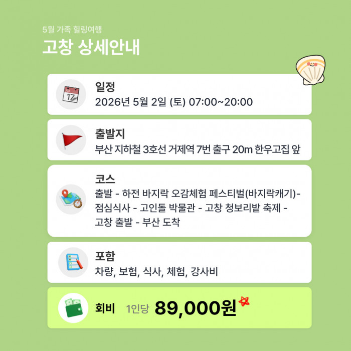 5월&엄빠랑 가족힐링여행 고창 요약정보 및 구매