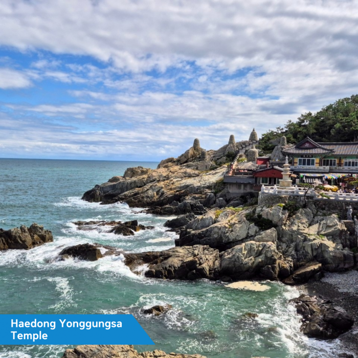 ???? Haedong Yonggungsa Temple: A seaside temple with mountains behind and the sea in front.