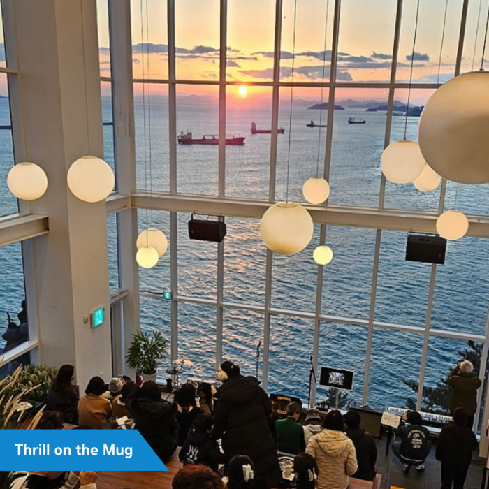 Taejongdae Café: Enjoy tea time with an ocean view at the trendy “Thrill on the Mug” café
