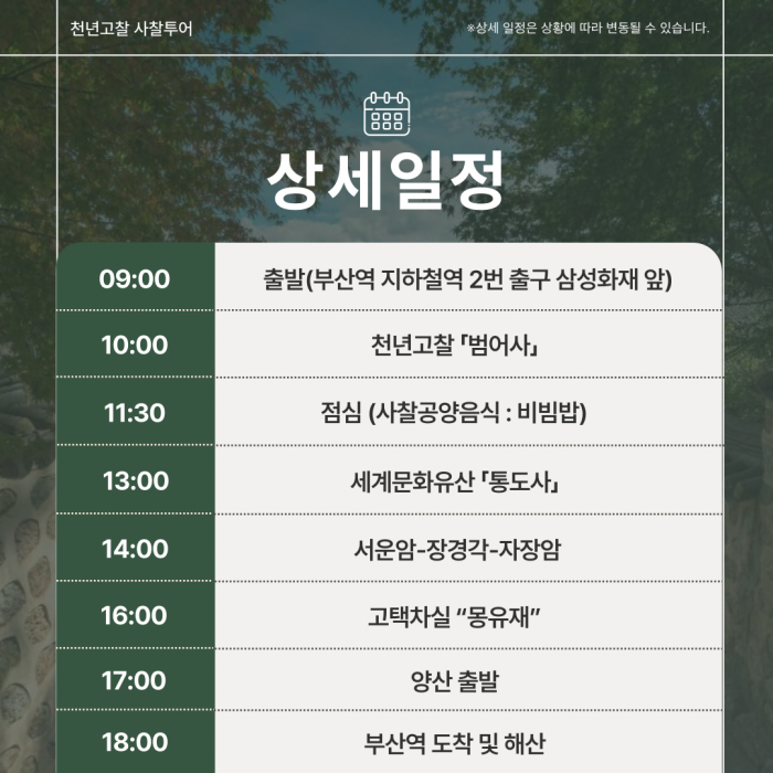 천년고찰 사찰투어 | 범어사, 통도사, 고택차실 몽유재 요약정보 및 구매