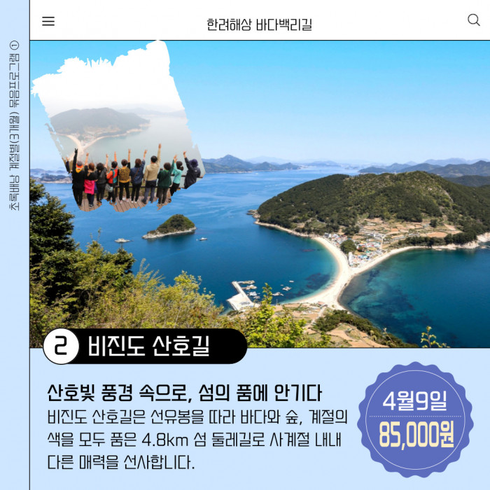 3/12 매물도 해품길, 4/9 비진도 산호길, 5/14 하화도 꽃섬길 (묶음상품으로 결제시 10%할인)