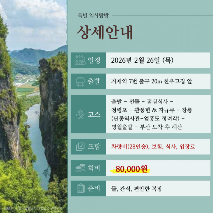 ★★ 강추 프로그램 ★★ 2월 26일(목) 특별역사탐방 '영월' > 시그니처