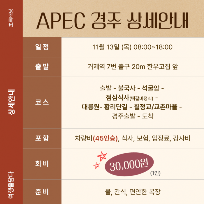 • [11월&여기] APEC 경주 투어 / 11.13(목)