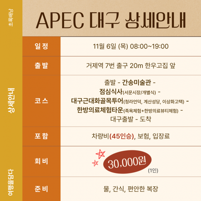 • [11월&여기] APEC 대구 투어 / 11.06(목)