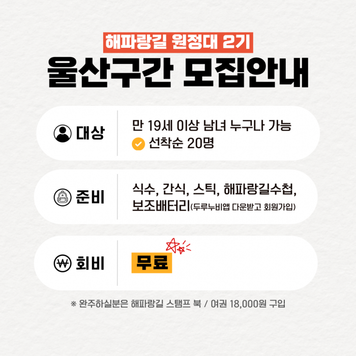 ★무료★ 2026 해파랑길 원정대 2기 울산구간 (4~9코스) > 시그니처