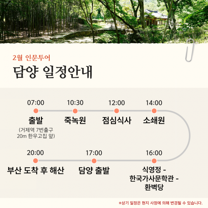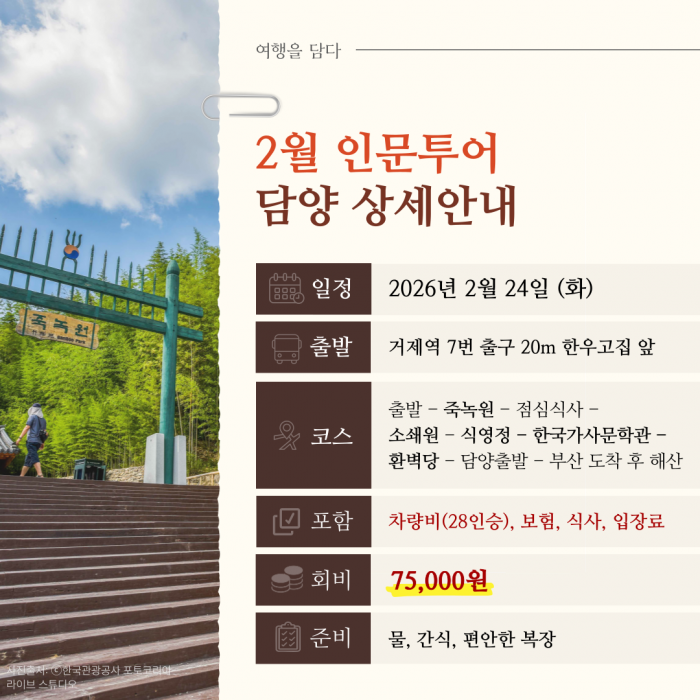 • [2월&인문투어] 담양 / 2월 24일 (화)